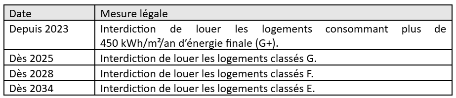 En revanche, les logements classés F ou G, appelés « passoires thermiques », sont déjà pénalisés sur le marché. Et ce, indépendamment de la réforme de 2026. La loi Climat et Résilience d’août 2021 a ainsi fixé un calendrier d’interdiction de mise en location pour les logements énergivores :
